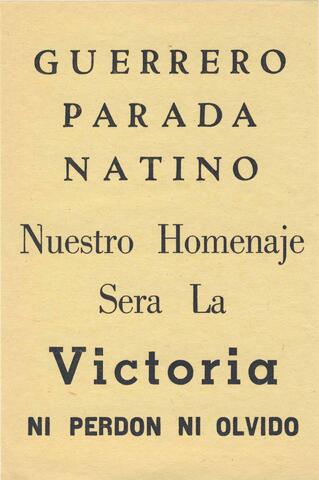 Panfleto: Guerrero Parada Natino. Nuestro Homenaje sera la victoria