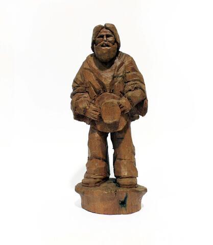 Tallado de hombre con sombrero en las manos en madera. Recuerdo de los oficios y profesiones de los PP que realizaron las figuras en la Cárcel de Talca.