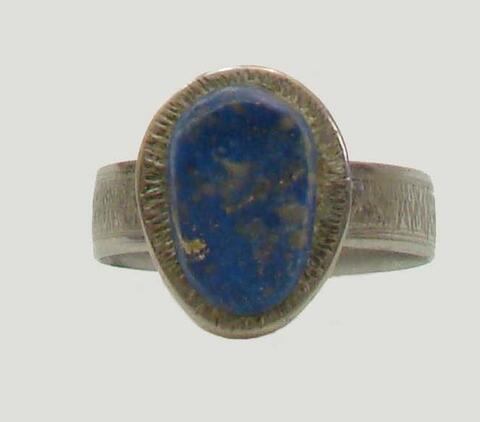 Anillo de cromo-niquel y lapislázuli, confeccionado en el Campamento de Prisioneros de Chacabuco por Lautaro Peredo con desechos de cables eléctricos encontrados en el centro de detención y que antes pertenecían a las instalaciones de la salitrera.