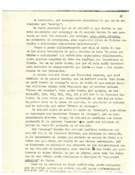 Documento en el que se exponen los fundamentos básicos de los procesos militares por los cuales han sido condenados miembros de las Fuerzas Armadas de Chile, estos supuestos son analizados de forma individual: 1) La ilegitimidad del Gobierno de Salvador Allende, 2) La existencia de un Estado de Guerra interno previo al Golpe Militar, 3) La afirmación de que los partidarios del Gobierno de la UP, así como los detractores del Golpe son enemigos de la patria. A causa de estas falsas hipótesis es que se enumeran las consecuencias que busca la justicia militar: 1) Transformar actos delictuosos gravemente penados por el Código de Justicia Militar, 2) Que tales hechos sean aplicados por ser considerados bajo el concepto de “tiempo de guerra”, 3) Privación de los condenados a las garantías esenciales y una defensa adecuada, 4) Prohibición del Derecho de apelación. Finalmente se enumeran las consecuencias resultantes de lo anterior y los problemas jurídicos que concluyen con la total vulneración a la Ley y la Constitución chilena.