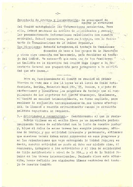 Carta mecanografiada firmada por Luis Valente y Osvaldo Puccio a nombre de un colectivo de chilenos en Berlín agrupados bajo el nombre de Comité de Familiares de Desaparecidos. La carta adjunta el Acta de Constitución del dicho Comité.