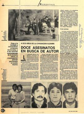 Reportaje realizado por un equipo periodístico del programa Contacto, de canal 13 y en el que se relata la Operación Albania o "Matanza de Corpus Christi", efectuada en Chile entre los días 15 y 16 de junio de 1987. En el operativo doce miembros del Frente Patriótico Manuel Rodríguez (FPMR) murieron a manos de agentes de la Central Nacional de Informaciones (CNI). Estos hechos fueron presentados por las autoridades como un supuesto "enfrentamiento".