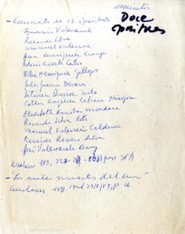 Nómina manuscrita sobre asesinato de 12 opositores (algunos nombres ilegibles)